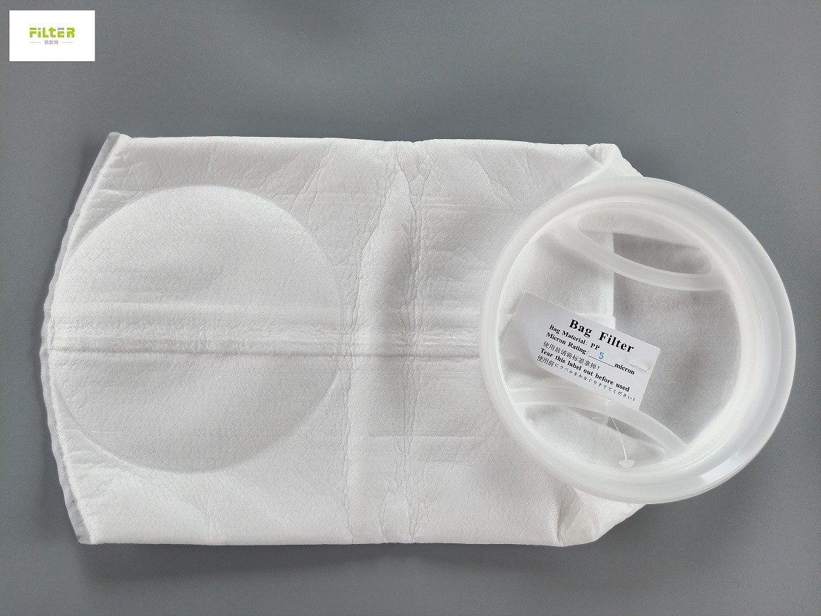 100 ميكرون PP حقيبة تصفية المياه الجسم الخياطة الموضوع مع حلقة الصلب: